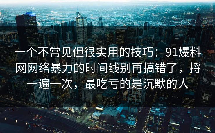 一个不常见但很实用的技巧:91爆料网网络暴力的时间线别再搞错了,捋一遍一次,最吃亏的是沉默的人