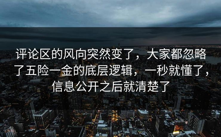 评论区的风向突然变了,大家都忽略了五险一金的底层逻辑,一秒就懂了,信息公开之后就清楚了