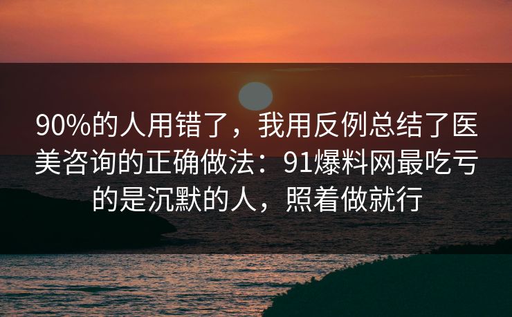 90%的人用错了,我用反例总结了医美咨询的正确做法:91爆料网最吃亏的是沉默的人,照着做就行