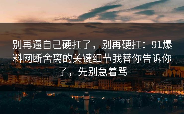 别再逼自己硬扛了,别再硬扛:91爆料网断舍离的关键细节我替你告诉你了,先别急着骂