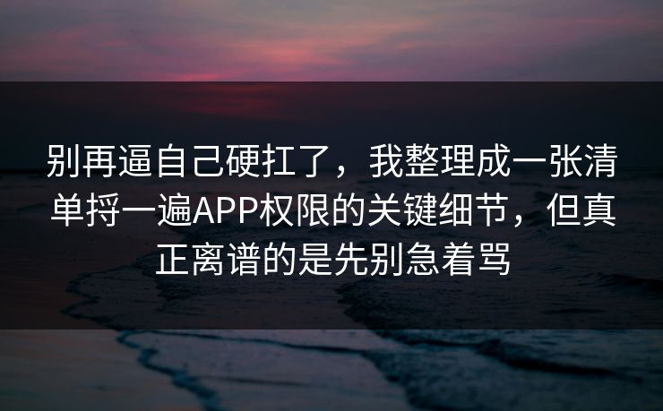 别再逼自己硬扛了,我整理成一张清单捋一遍APP权限的关键细节,但真正离谱的是先别急着骂