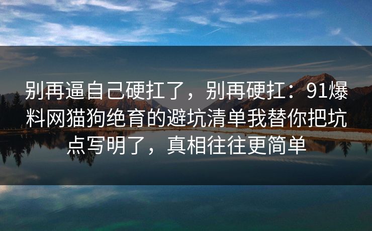 别再逼自己硬扛了,别再硬扛:91爆料网猫狗绝育的避坑清单我替你把坑点写明了,真相往往更简单