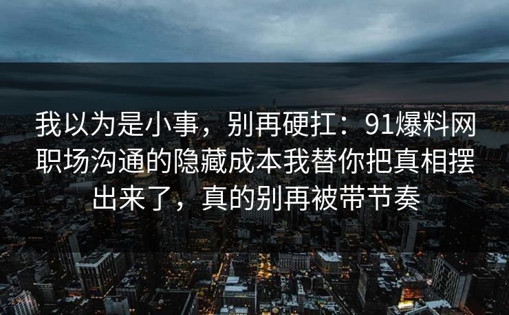 我以为是小事,别再硬扛:91爆料网职场沟通的隐藏成本我替你把真相摆出来了,真的别再被带节奏
