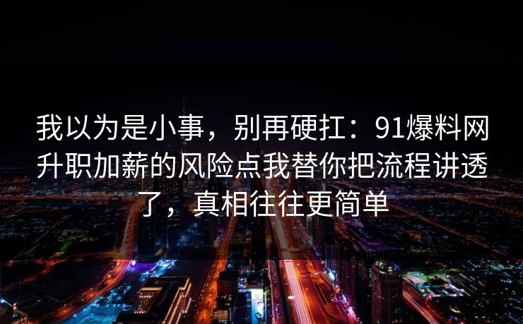 我以为是小事,别再硬扛:91爆料网升职加薪的风险点我替你把流程讲透了,真相往往更简单
